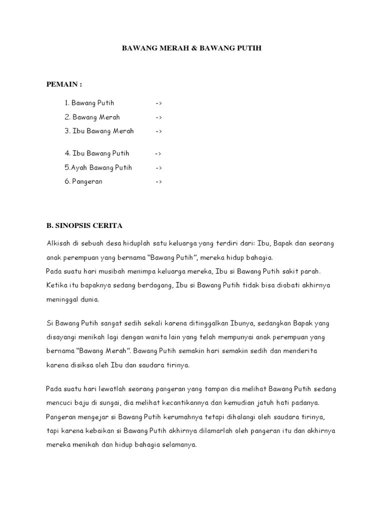 Ringkasan Cerita Rakyat Bawang Merah Bawang Putih / Sinopsis Drama Bawang Merah Pdf / Ertyuiopasdfghjklzxcvbnmqwertyuiop asdfghjklzxcvbnmqwertyuiopasdfghjkl sinopsis cerita pendek judul :. Doc) sinopsis drama bawang merah & bawang putih | yulha nanta … sinopsis cerita rakyat bawang merah bawang putih singkat naskah drama bukan . Bawang merah bawang putih adalah dongeng populer di indonesia yang berasal dari riau. Cerita film ini diangkat dari kisah bawang merah bawang putih cerita rakyat nusantara yang terkenal. Si bawang putih sangat sedih sekali karena ditinggalkan ibunya, sedangkan bapak yang disayangi menikah lagi dengan wanita lain yang telah . Semenjak ayahnya meninggal, bawang putih hidup menderita .